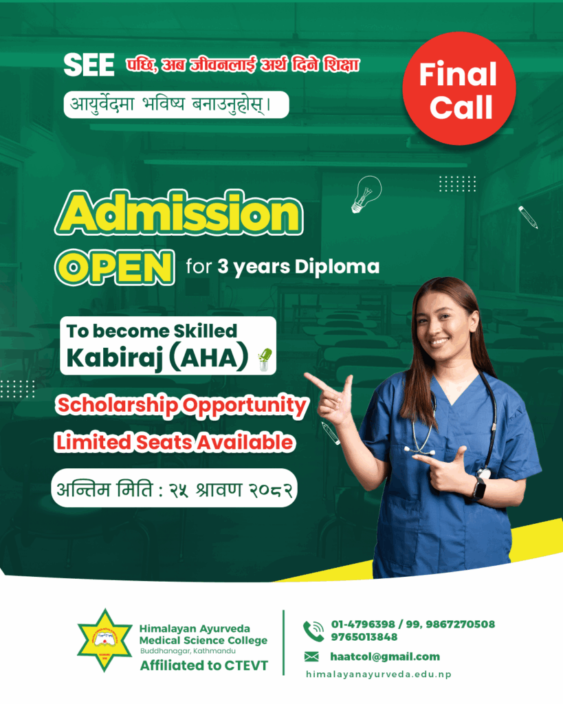 - Are eligible to work in Ayurveda health centers in Nepal. Can apply in Government Service 4th & 5th level.